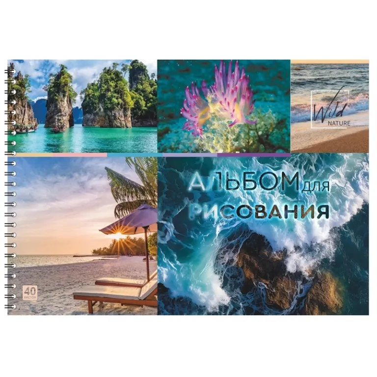 Альбом для рисования Lamark на гребне, обложка — мелованный картон, полноцветная печать, выборочный уф-лак, внутренний блок — плотная офсетная бумага 100 г/м2, 40 листов, размер 294х208 мм.