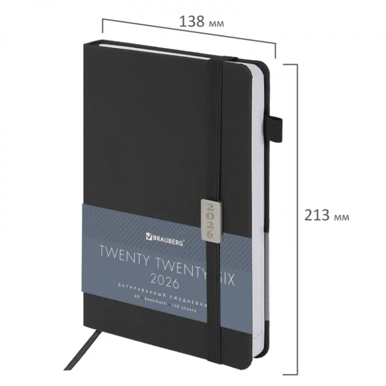 Внутренний блок включает 168 листов белой бумаги плотностью 70 г/м2. Каждая страничка имеет перфорированный угол. Благодаря стандартному формату А5 (138х213 мм) ежедневник удобно использовать как в офисе, так и на выездных деловых встречах.
