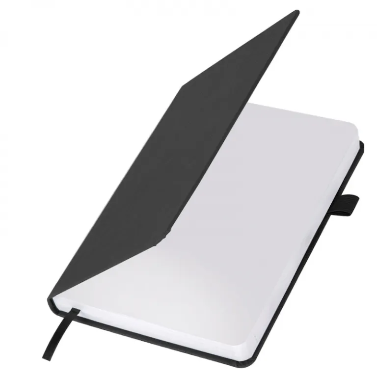 Жесткая книжная обложка классического черного цвета стилизована под искусственную кожу с мелким рисунком. Обложка фиксируется резинкой, поэтому ежедневник не откроется в сумке или портфеле и страницы не помнутся. Материал обложки подходит для горячего тиснения.