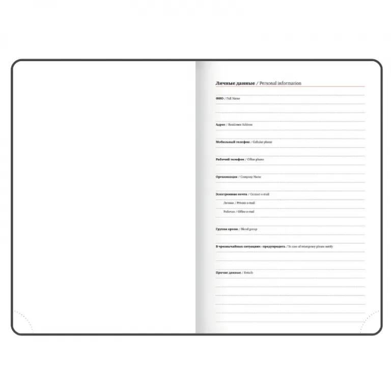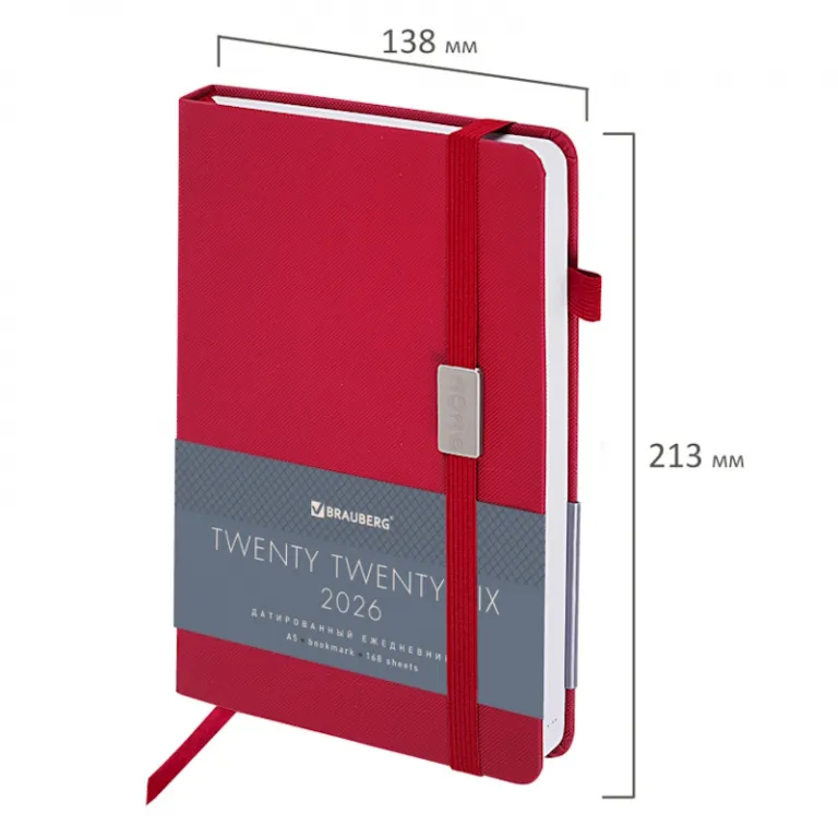 Внутренний блок включает 168 листов белой бумаги плотностью 70 г/м2. Каждая страничка имеет перфорированный угол. Благодаря стандартному формату А5 (138х213 мм) ежедневник удобно использовать как в офисе,