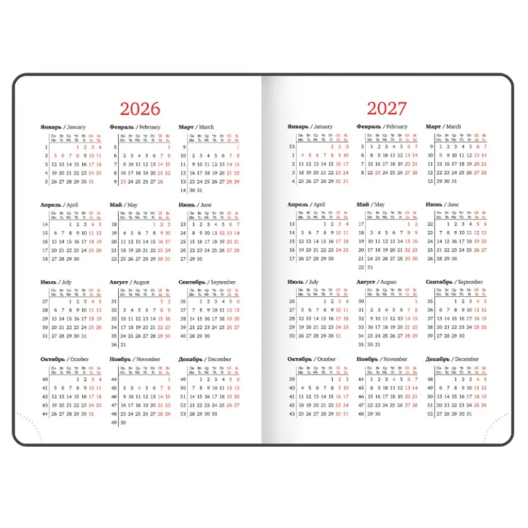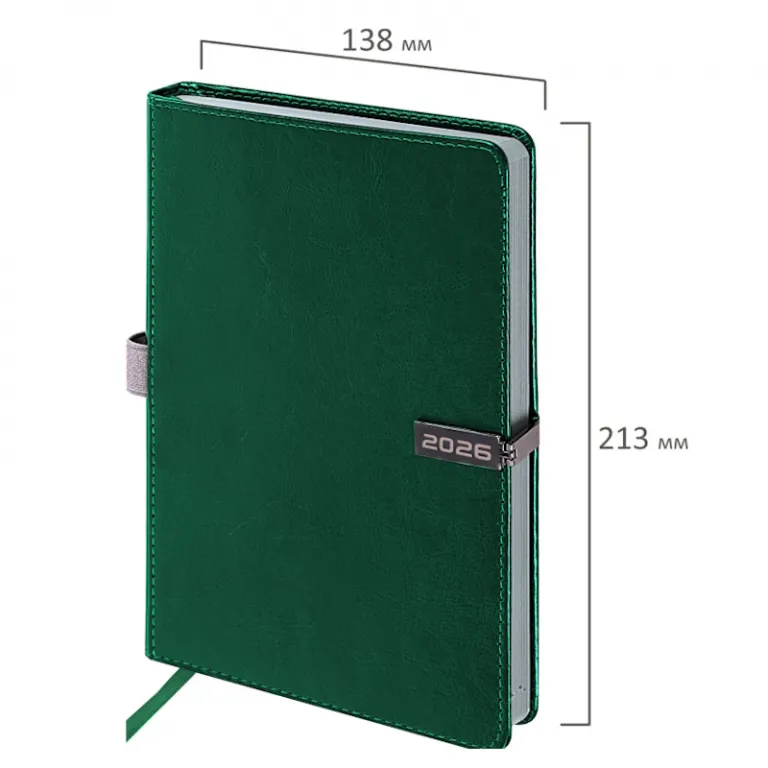 Внутренний блок включает 168 листов белой бумаги плотностью 70 г/м2. Каждая страничка имеет перфорированный угол. Благодаря стандартному формату А5 (138х213 мм) ежедневник удобно использовать как в офисе, так и на выездных деловых встречах.