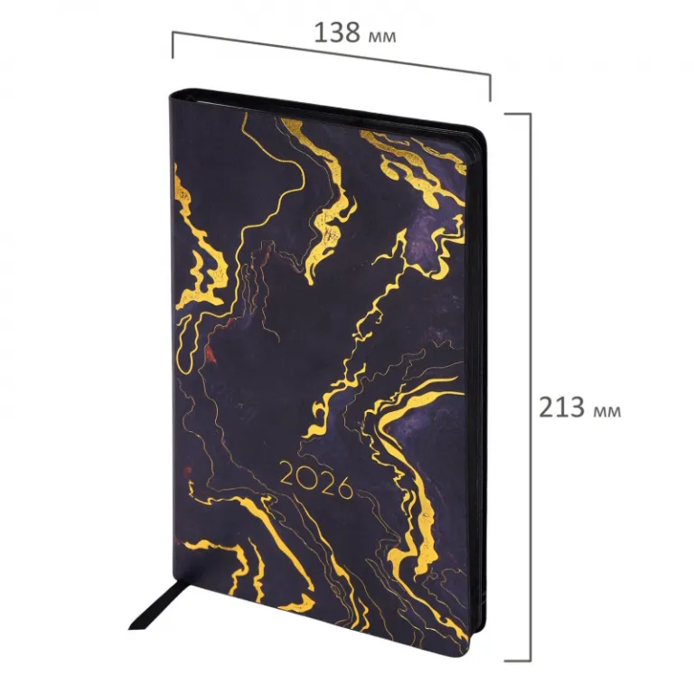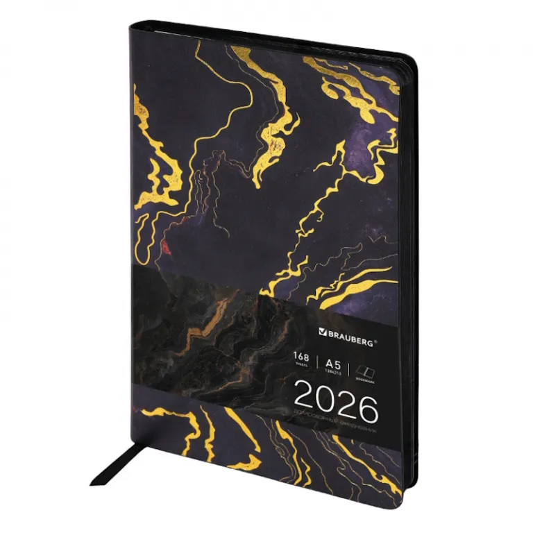 Ежедневник датир. 2026, А5, BRAUBERG Vista, 336 стр., кожзам, гибкая обложка, Black marble