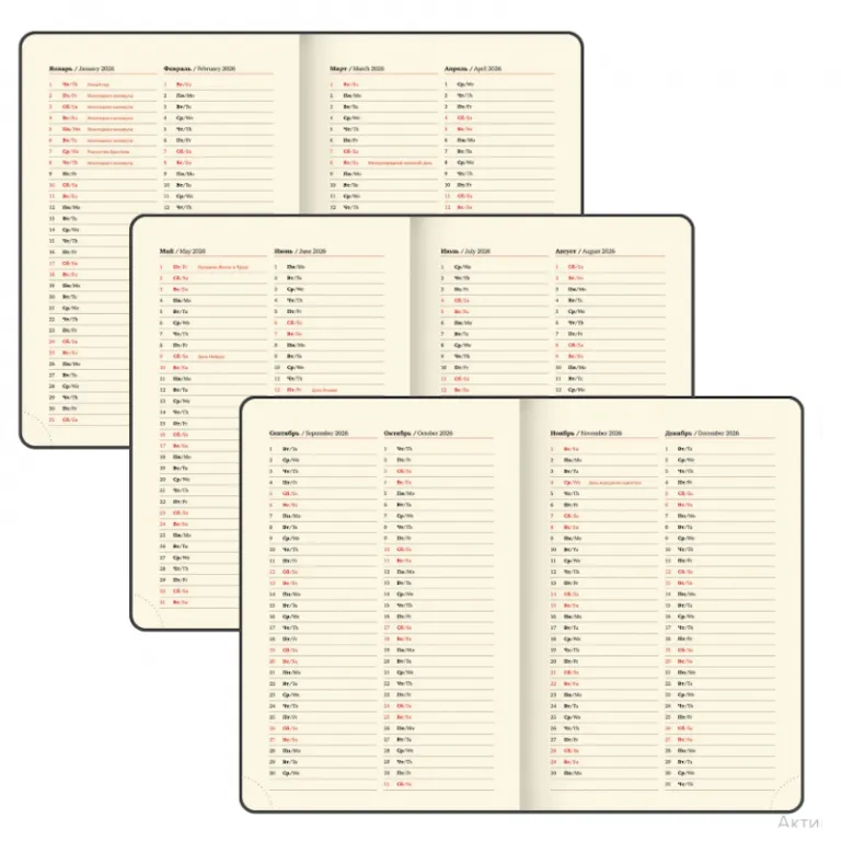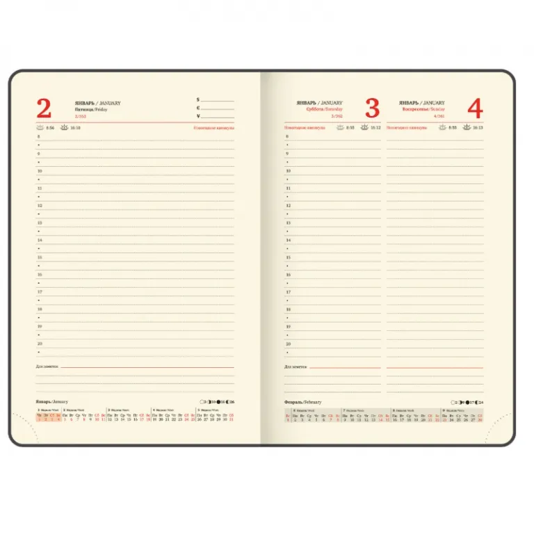 с помощью которой при необходимости можно быстро открыть ежедневник на нужной странице. Ежедневник снабжен обширным справочным материалом. В конце есть 4 страницы для записей и заметок.