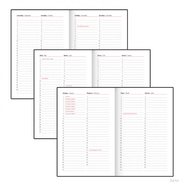 Они не пропечатаны, что позволяет владельцу выделять под каждый день необходимое количество листов и записывать важные сведения.