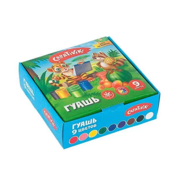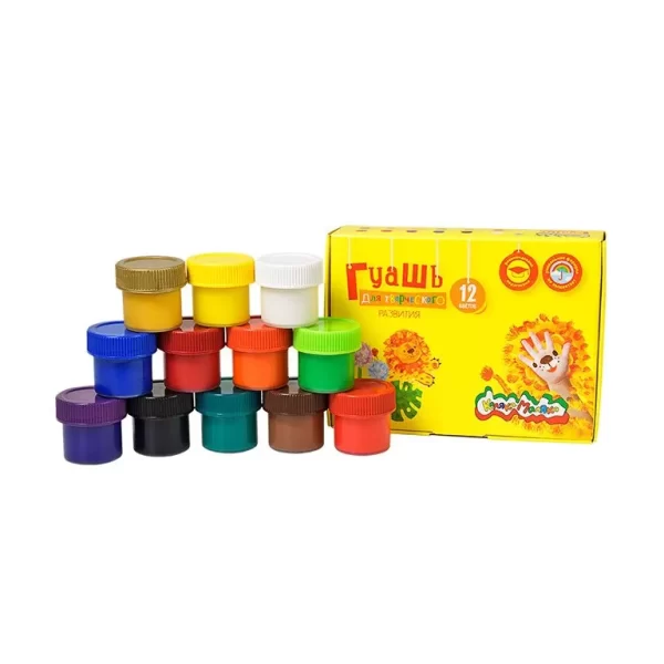 Гуашь Каляка-Маляка® предназначена для детского творчества. Отлично подходит в качестве первого материала для обучения рисованию. Имеет оптимальное цветовое сочетание, обладает хорошей
