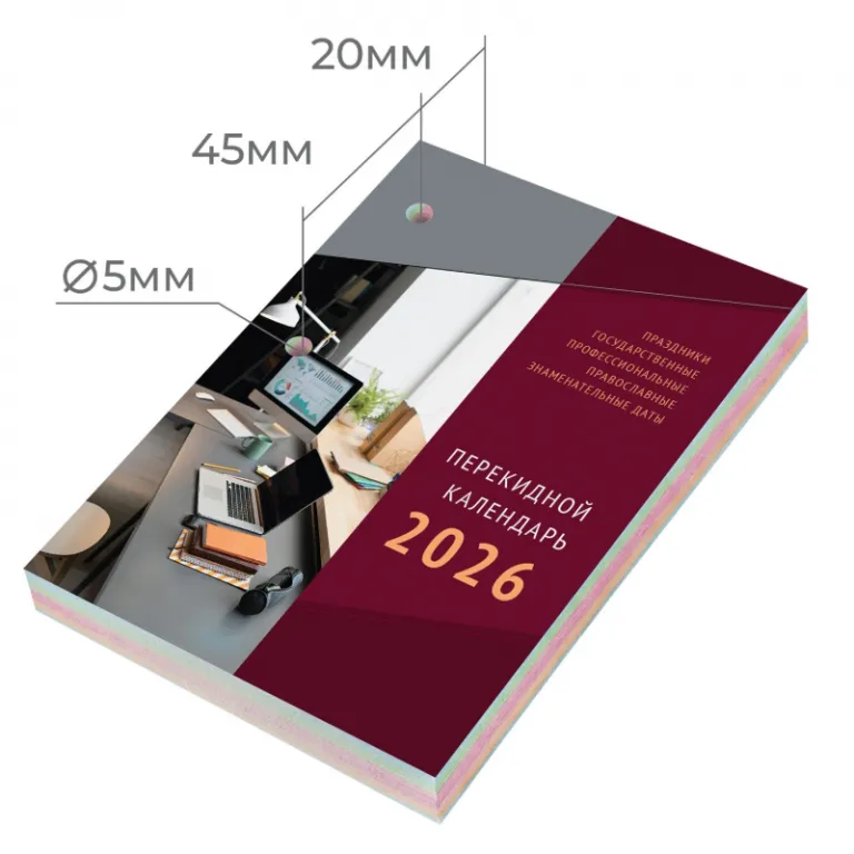 Блок календаря на 2026 год напечатан на газетной бумаге плотностью 55 г/м2 в одну краску с выделением цветом четырех сезонов.