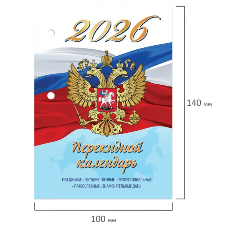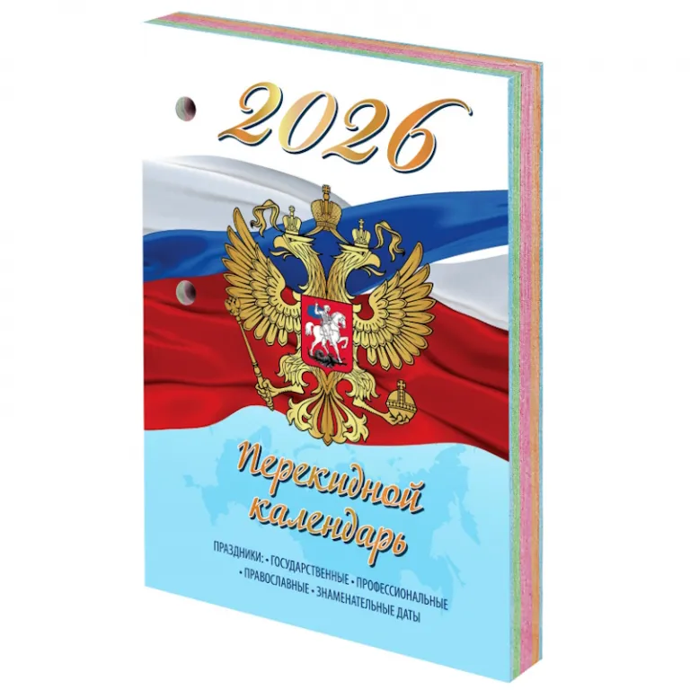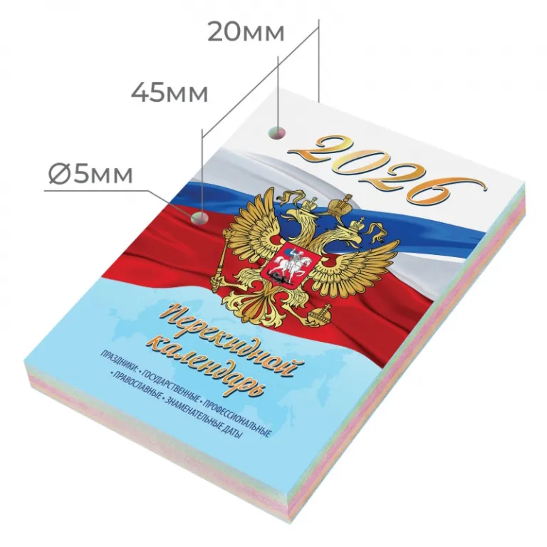 Блок календаря на 2026 год напечатан на газетной бумаге плотностью 55 г/м2 в одну краску с выделением цветом четырех сезонов.