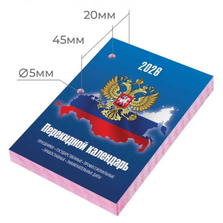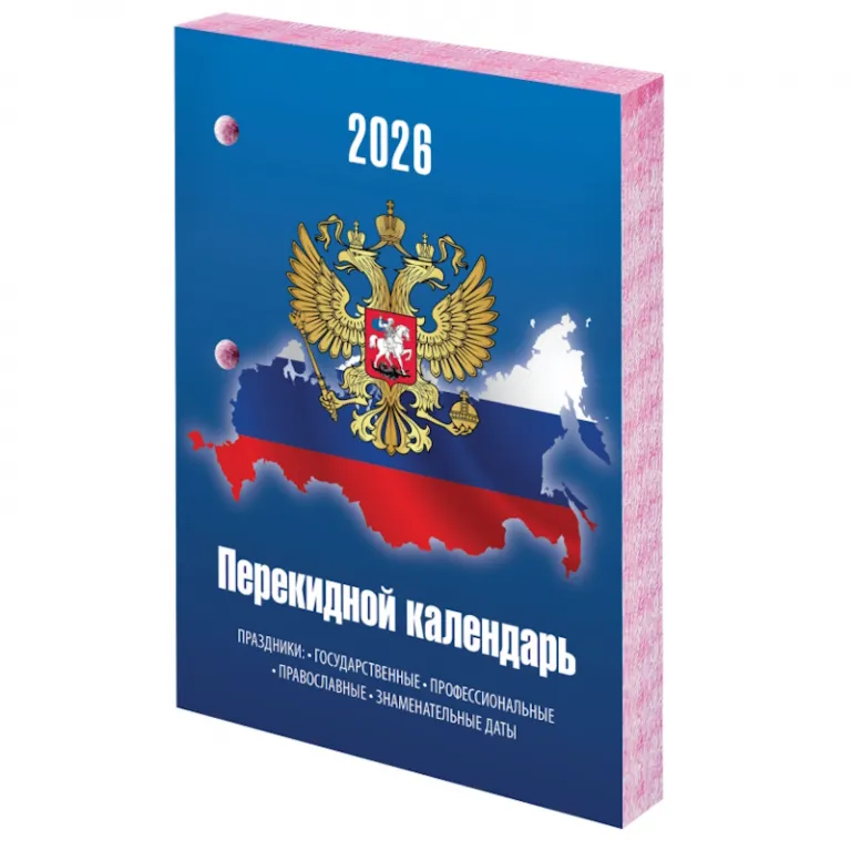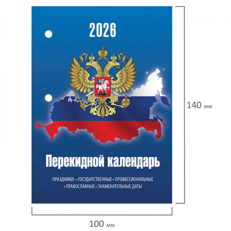 Блок календаря на 2026 год напечатан на газетной бумаге плотностью 55 г/м2 в 2 краски с выделением цветом выходных и праздничных дней.