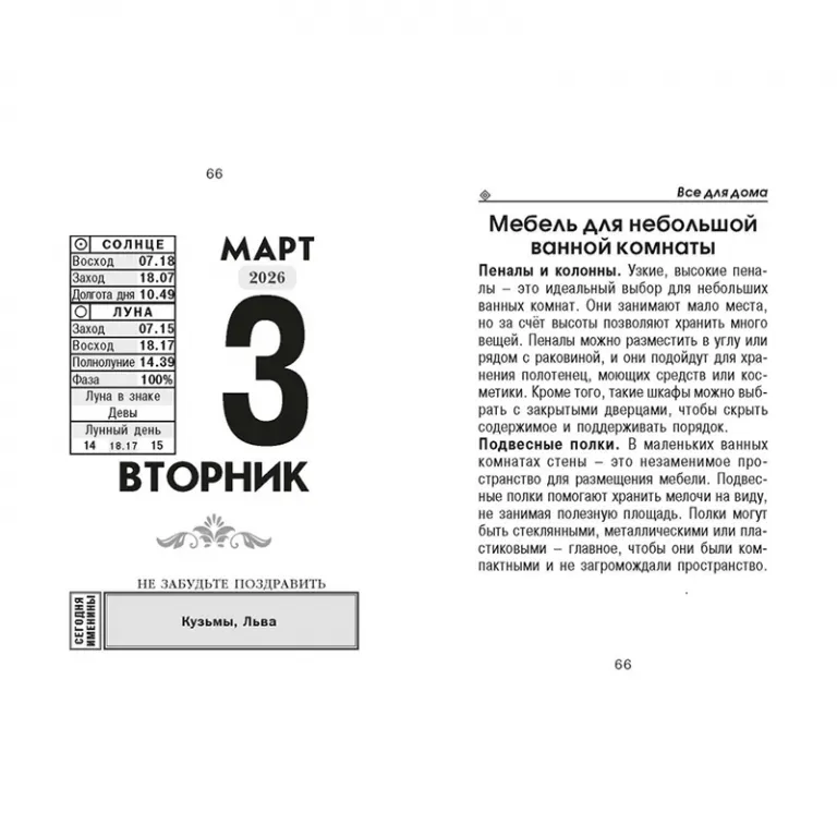 Отрывной настенный календарь на 365 дней 2026 года с указанием государственных и профессиональных праздников, а также ежедневным перечнем именинников. На страницах календаря прекрасные