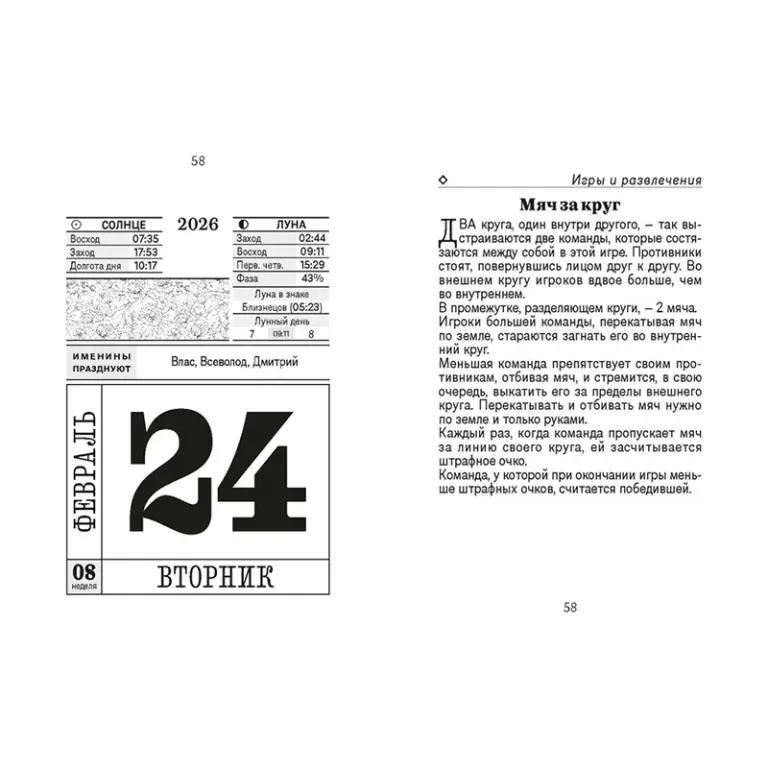 и любопытные факты. Каждый листочек календаря содержит интересную и познавательную информацию для читателей всех возрастов. Как и в любом отрывном календаре, на каждый день года указаны