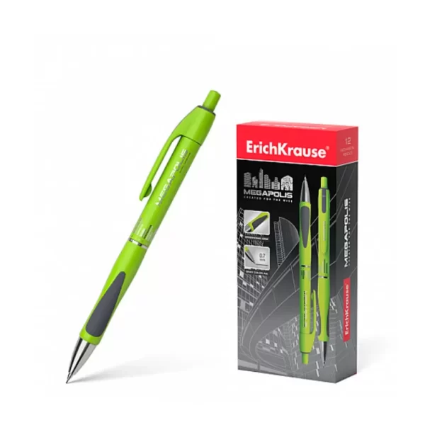 Механический карандаш эргономичной треугольной формы с убирающейся цангой и удобной профилированной грип-зоной из резины. Оснащен точилкой. Твердость HB. Диаметр грифеля – 2.0 мм.