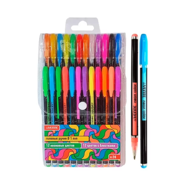 Набор ручек гелевых «deVENTE. Neon Black» 12 флуоресцентных неоновых цветов, d=1 мм, черный корпус с цветными полосами, сменный стержень, в пластиковом блистере