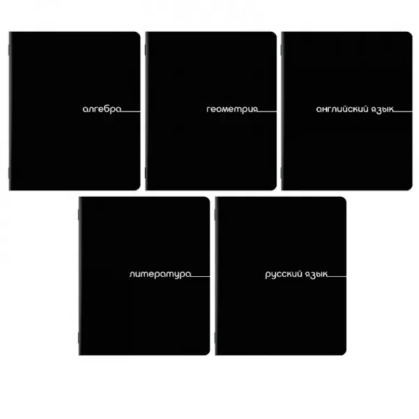 В комплекте 5 тетрадей: Алгебра, Английский язык, Геометрия, Литература (в линию), Русский язык (в линию).
