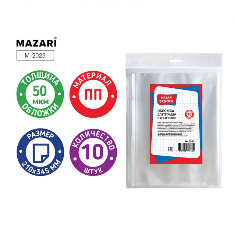 Набор обложек для тетрадей и дневников, 10 шт, ПП,50мкм, Размер: 210х345 мм.