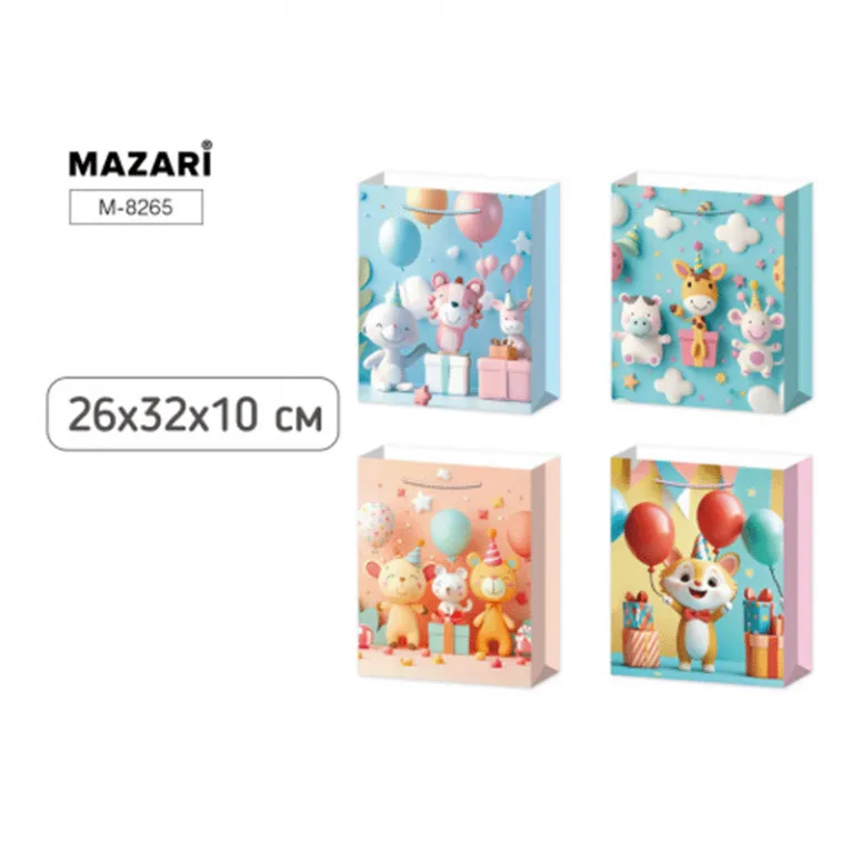 Пакет подарочный бумажный ДЕТСКИЙ, 26*32*10 см, 4 дизайна в ассортименте