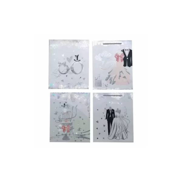 Пакет подарочный под бутылку 36x12x9 см, бумага плоность 100 г/м2., Пара, белый