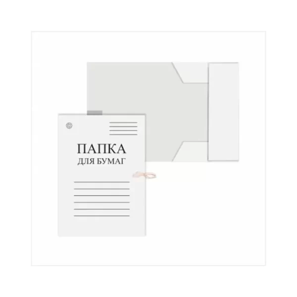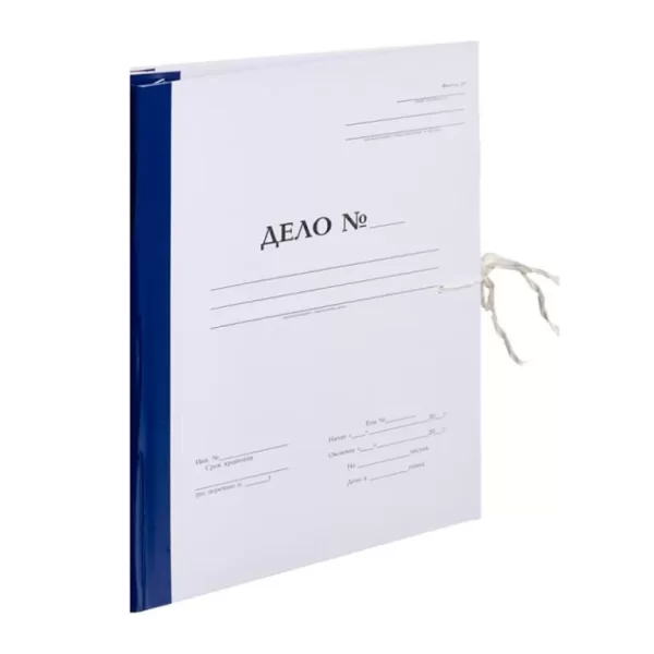 Папка с завязками «Дело №» с расширением до 40 мм, формата А4 изготовлена из белого немелованного картона (плотность 300 г/кв. м).