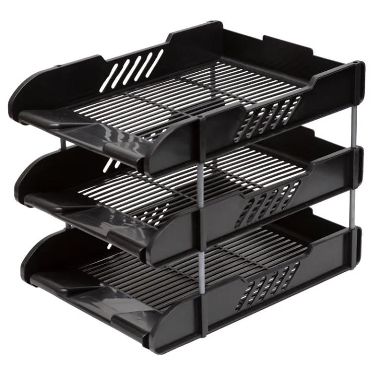 Подставка (лоток) для бумаг, горизонт. 3 ур. на металл. стержнях, пластик, черный, Attomex
