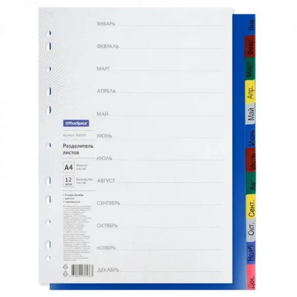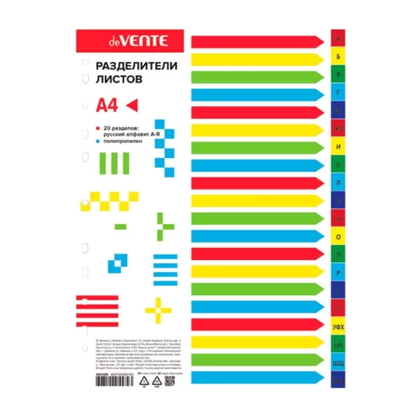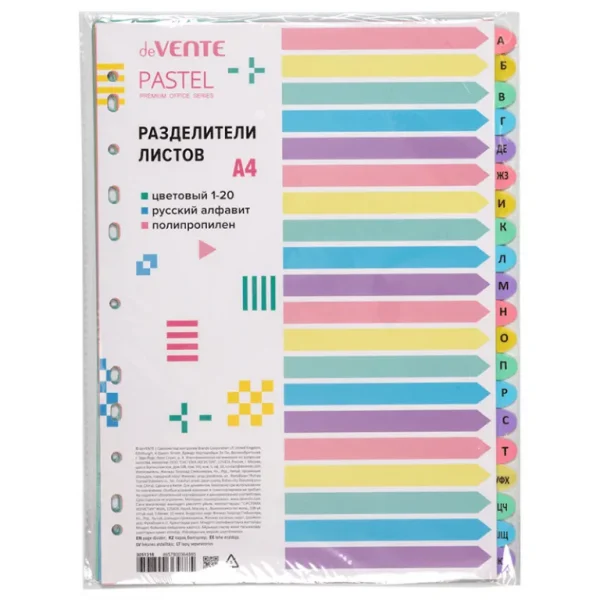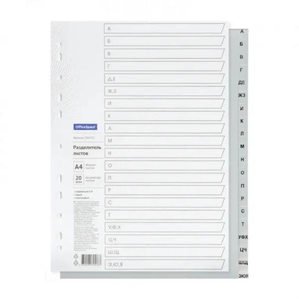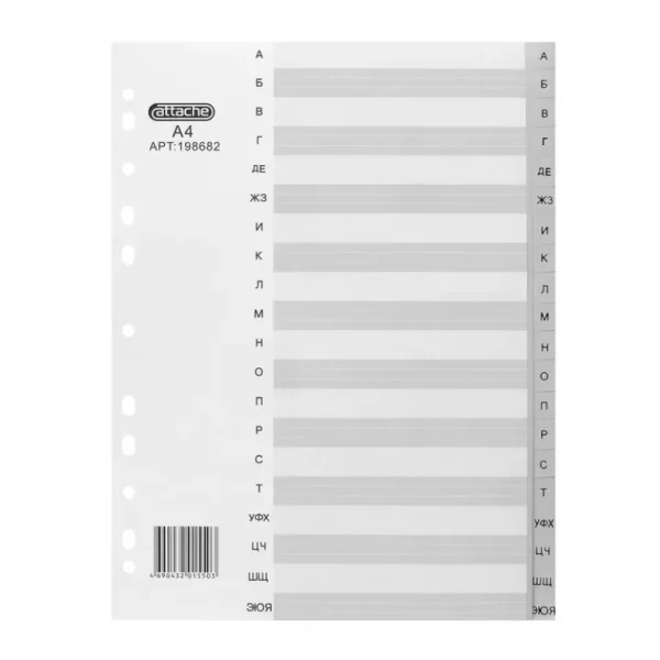 Разделитель листов пластиковый A4, от А до Я Attomex