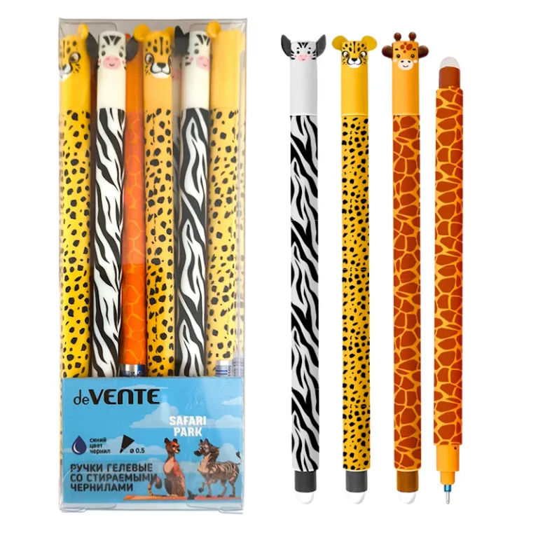 Ручка гелевая стираемая «deVENTE. Safari Park» d=0,5 мм, корпус с эффектом Velvet-Touch, цвета корпуса ассорти 3 цвета, с декоративными элементами и запечаткой