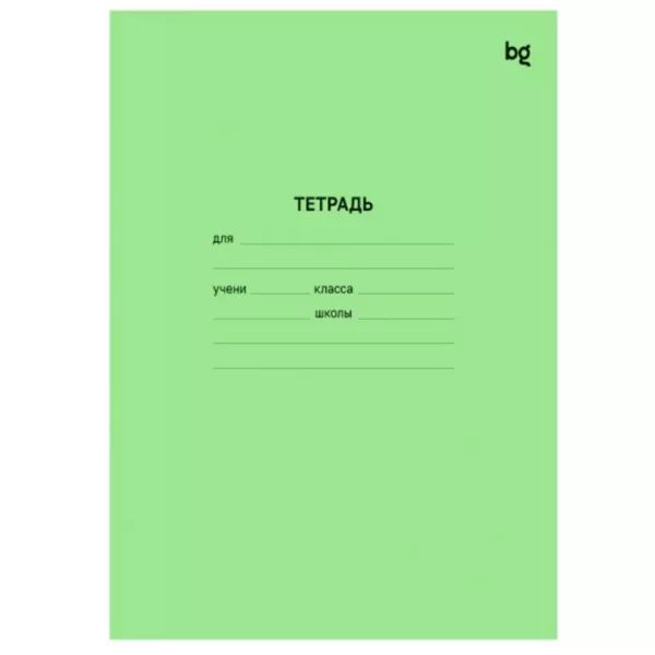 Тетрадь «BG» с зеленой обложкой изготовлена в соответствии с ГОСТ Р 54543-2011.