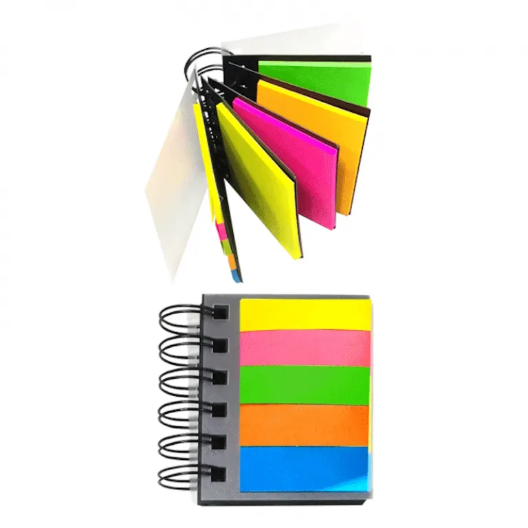 Набор самоклеящихся этикеток-закладок «deVENTE. Book» бумажные 50×15 мм, 5×25 листов и 51×76 мм, 4×25 листов, 5 неоновых цветов, пластиковая обложка, евро спираль, в пластиковом пакете с европодвесом